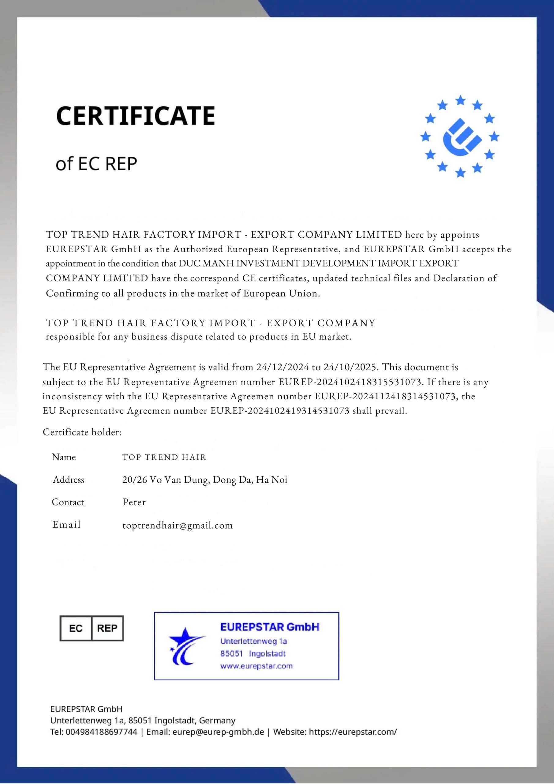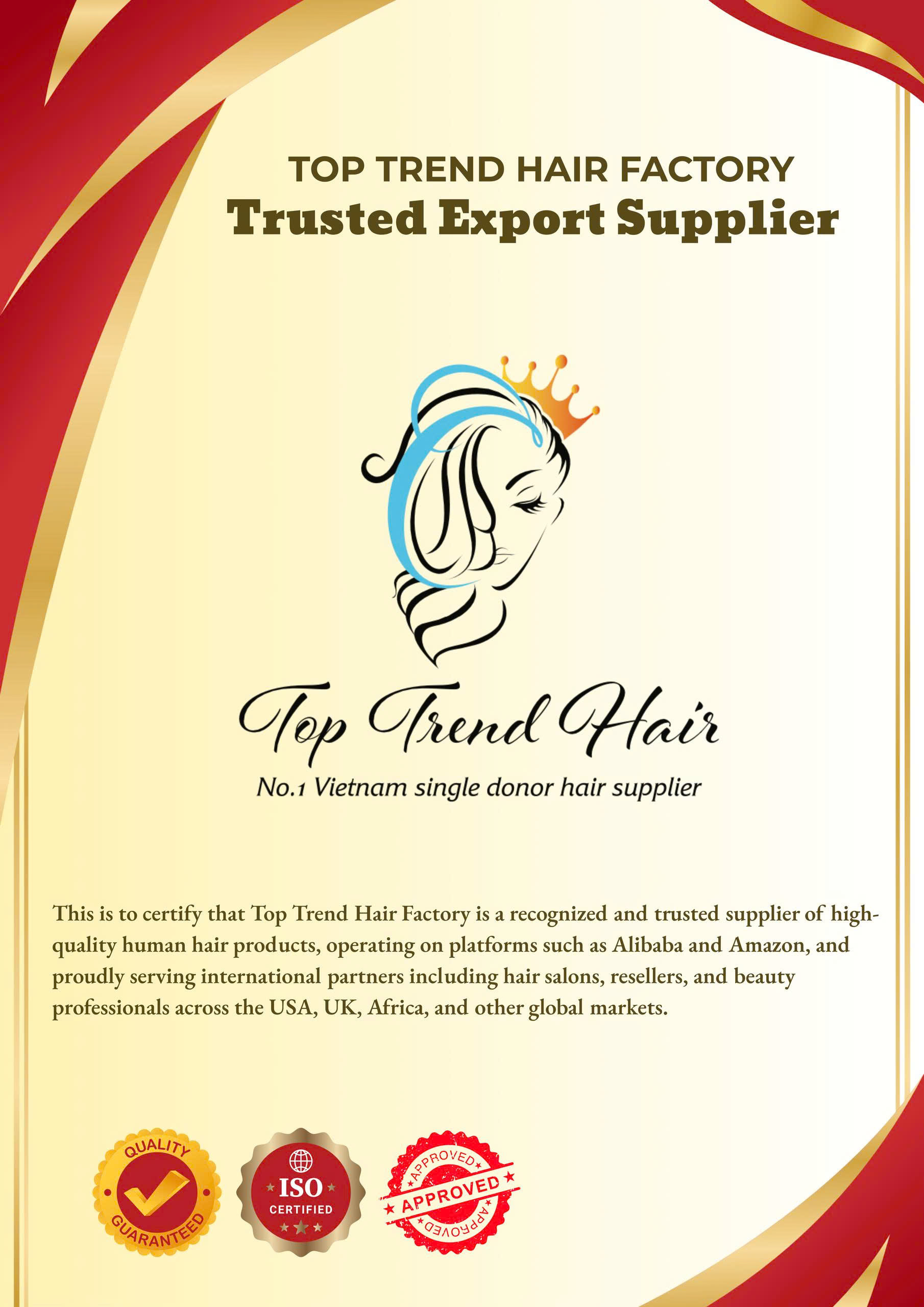 π Located in Vietnam, Top Trend Hair Factory has over 10 years of expertise and is recognized by the Ministry of Industry and Trade of Vietnam for our commitment to quality and innovation.